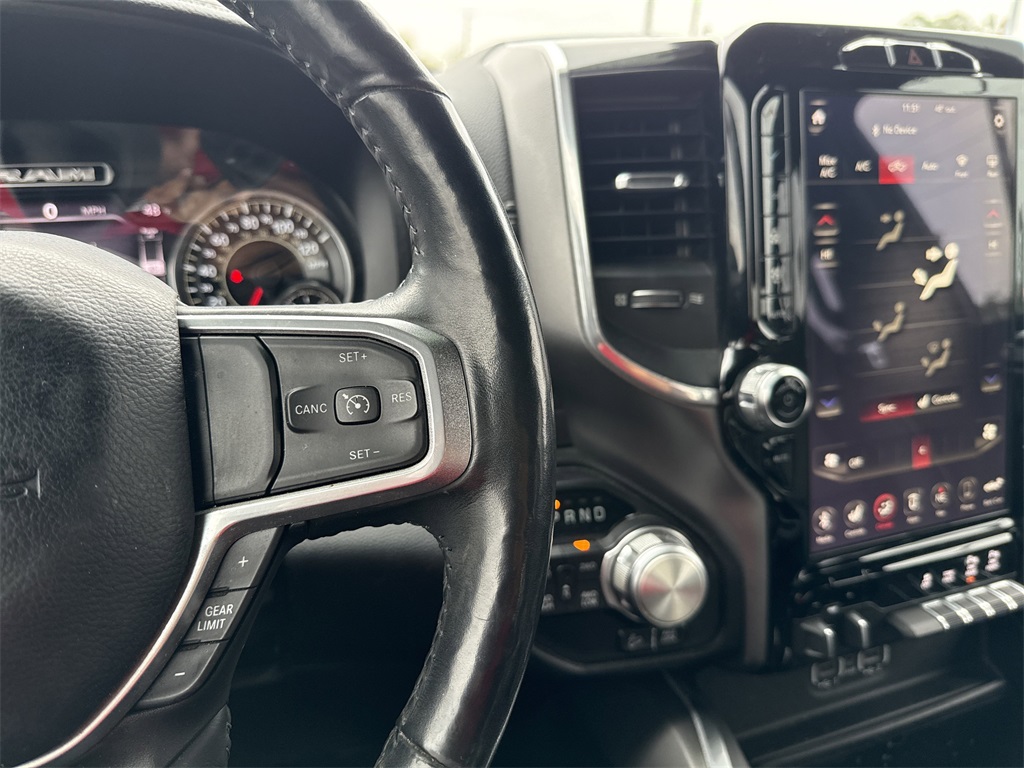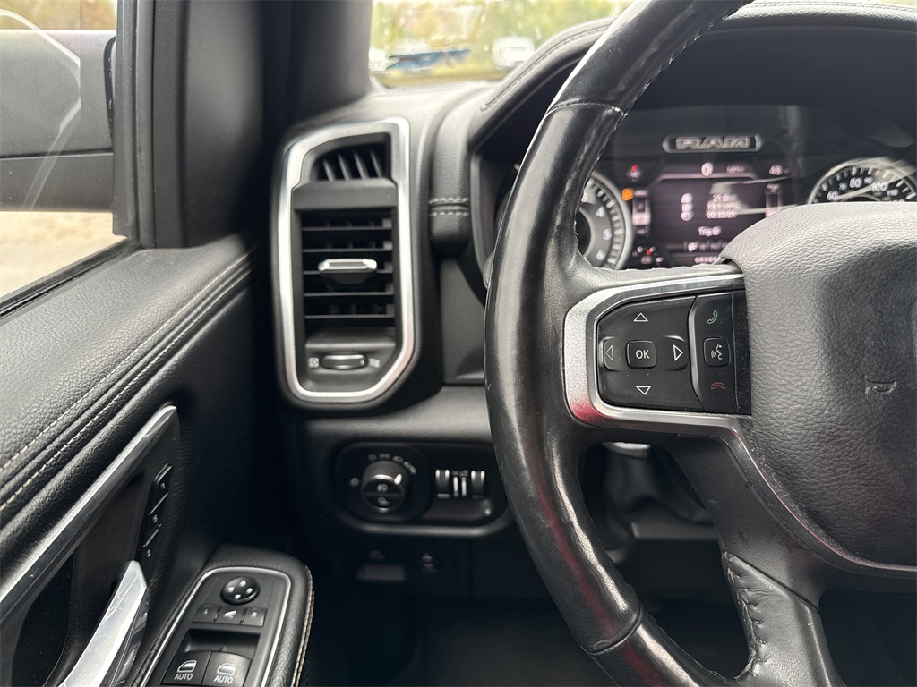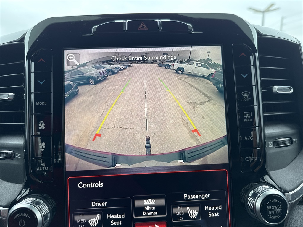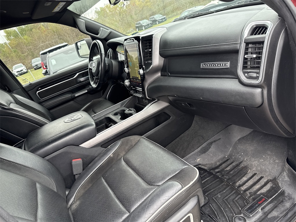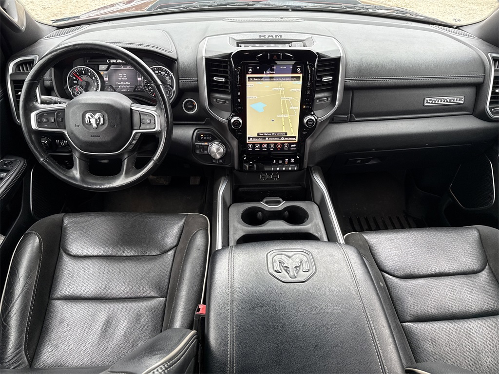 ra HD Shock Absorbers, and Tow Hooks), Quick Order Package 25H Laramie, Sport Appearance Package (Wheels: 20" x 9" Premium Painted w/Inserts), #1 Seat Foam Cushion, 1-Yr SiriusXM Guardian Trial, 10 Speakers, 12" Touchscreen Display, 3 Rear Seat Head Restraints, 4 Way Front Headrests, 4-Wheel Disc Brakes, 48V Belt Starter Generator, 4G LTE Wi-Fi Hot Spot, 5-Year SiriusXM Traffic Service, 5-Year SiriusXM Travel Link Service, 8.4" Touchscreen Display, ABS brakes, Adjustable pedals, Air Conditioning, Alloy wheels, AM/FM radio: SiriusXM, Apple CarPlay, Apple CarPlay/Android Auto, Audio memory, Auto-dimming door mirrors, Auto-dimming Rear-View mirror, Automatic temperature control, Brake assist, Bumpers: chrome, Compass, Delay-off headlights, Disassociated Touchscreen Display, Driver door bin, Driver Seat Memory, Driver vanity mirror, Dual front impact airbags, Dual front side impact airbags, Electronic Stability Control, For Details, Visit DriveUconnect.com, Front anti-roll bar, Front Center Armrest w/Storage, Front dual zone A/C, Front fog lights, Front reading lights, Front Seat Back Map Pockets, Front wheel independent suspension, Fully automatic headlights, Garage door transmitter, Google Android Auto, GPS Antenna Input, GPS Navigation, HD Radio, Heated door mirrors, Heated Front Seats, Heated front seats, Heated Steering Wheel, Heated steering wheel, Illuminated entry, Integrated Center Stack Radio, Leather steering wheel, Leather Trim 40/20/40 Bench Seat, Low tire pressure warning, Memory seat, Occupant sensing airbag, Outside temperature display, Overhead airbag, Overhead console, Panic alarm, ParkSense Front/Rear Park Assist w/Stop (DISC), ParkView Rear Back-Up Camera, Passenger door bin, Passenger vanity mirror, Pedal memory, Power 4-Way Driver Lumbar Adjust, Power 4-Way Passenger Lumbar Adjust, Power 8-Way Driver & Passenger Seats, Power door mirrors, Power driver seat, Power passenger seat, Power steering, Power windows, Radio data system, Radio: Uconnect 12 w/Navigation, Radio: Uconnect 4 w/8.4" Display, Rear anti-roll bar, Rear seat center armrest, Rear step bumper, Rear window defroster, Remote keyless entry, Security system, SiriusXM Satellite Radio, SiriusXM Traffic Plus, SiriusXM Travel Link, SiriusXM w/360L, Speed control, Split folding rear seat, Steering wheel mounted audio controls, Tachometer, Telescoping steering wheel, Tilt steering wheel, Traction control, Trailer Brake Control, Trip computer, Turn signal indicator mirrors, USB Host Flip, Variably intermittent wipers, Ventilated Front Seats, Ventilated front seats, Voltmeter, and Wheels: 18" x 8" Aluminum Base PainteD.