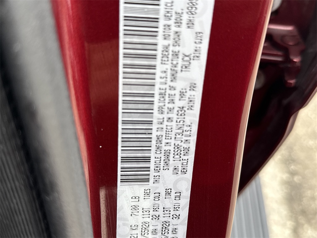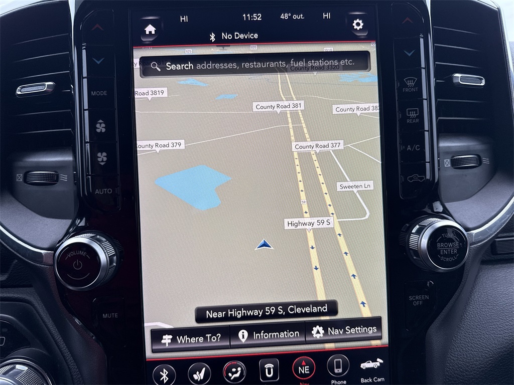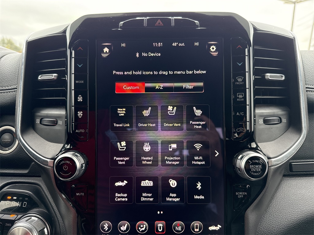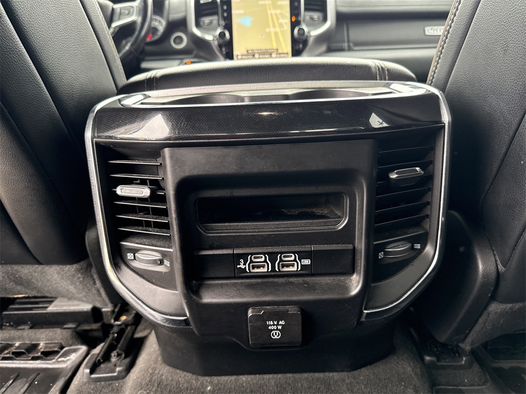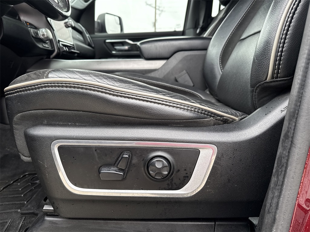 ra HD Shock Absorbers, and Tow Hooks), Quick Order Package 25H Laramie, Sport Appearance Package (Wheels: 20" x 9" Premium Painted w/Inserts), #1 Seat Foam Cushion, 1-Yr SiriusXM Guardian Trial, 10 Speakers, 12" Touchscreen Display, 3 Rear Seat Head Restraints, 4 Way Front Headrests, 4-Wheel Disc Brakes, 48V Belt Starter Generator, 4G LTE Wi-Fi Hot Spot, 5-Year SiriusXM Traffic Service, 5-Year SiriusXM Travel Link Service, 8.4" Touchscreen Display, ABS brakes, Adjustable pedals, Air Conditioning, Alloy wheels, AM/FM radio: SiriusXM, Apple CarPlay, Apple CarPlay/Android Auto, Audio memory, Auto-dimming door mirrors, Auto-dimming Rear-View mirror, Automatic temperature control, Brake assist, Bumpers: chrome, Compass, Delay-off headlights, Disassociated Touchscreen Display, Driver door bin, Driver Seat Memory, Driver vanity mirror, Dual front impact airbags, Dual front side impact airbags, Electronic Stability Control, For Details, Visit DriveUconnect.com, Front anti-roll bar, Front Center Armrest w/Storage, Front dual zone A/C, Front fog lights, Front reading lights, Front Seat Back Map Pockets, Front wheel independent suspension, Fully automatic headlights, Garage door transmitter, Google Android Auto, GPS Antenna Input, GPS Navigation, HD Radio, Heated door mirrors, Heated Front Seats, Heated front seats, Heated Steering Wheel, Heated steering wheel, Illuminated entry, Integrated Center Stack Radio, Leather steering wheel, Leather Trim 40/20/40 Bench Seat, Low tire pressure warning, Memory seat, Occupant sensing airbag, Outside temperature display, Overhead airbag, Overhead console, Panic alarm, ParkSense Front/Rear Park Assist w/Stop (DISC), ParkView Rear Back-Up Camera, Passenger door bin, Passenger vanity mirror, Pedal memory, Power 4-Way Driver Lumbar Adjust, Power 4-Way Passenger Lumbar Adjust, Power 8-Way Driver & Passenger Seats, Power door mirrors, Power driver seat, Power passenger seat, Power steering, Power windows, Radio data system, Radio: Uconnect 12 w/Navigation, Radio: Uconnect 4 w/8.4" Display, Rear anti-roll bar, Rear seat center armrest, Rear step bumper, Rear window defroster, Remote keyless entry, Security system, SiriusXM Satellite Radio, SiriusXM Traffic Plus, SiriusXM Travel Link, SiriusXM w/360L, Speed control, Split folding rear seat, Steering wheel mounted audio controls, Tachometer, Telescoping steering wheel, Tilt steering wheel, Traction control, Trailer Brake Control, Trip computer, Turn signal indicator mirrors, USB Host Flip, Variably intermittent wipers, Ventilated Front Seats, Ventilated front seats, Voltmeter, and Wheels: 18" x 8" Aluminum Base PainteD.