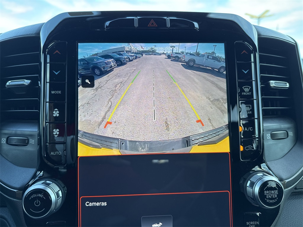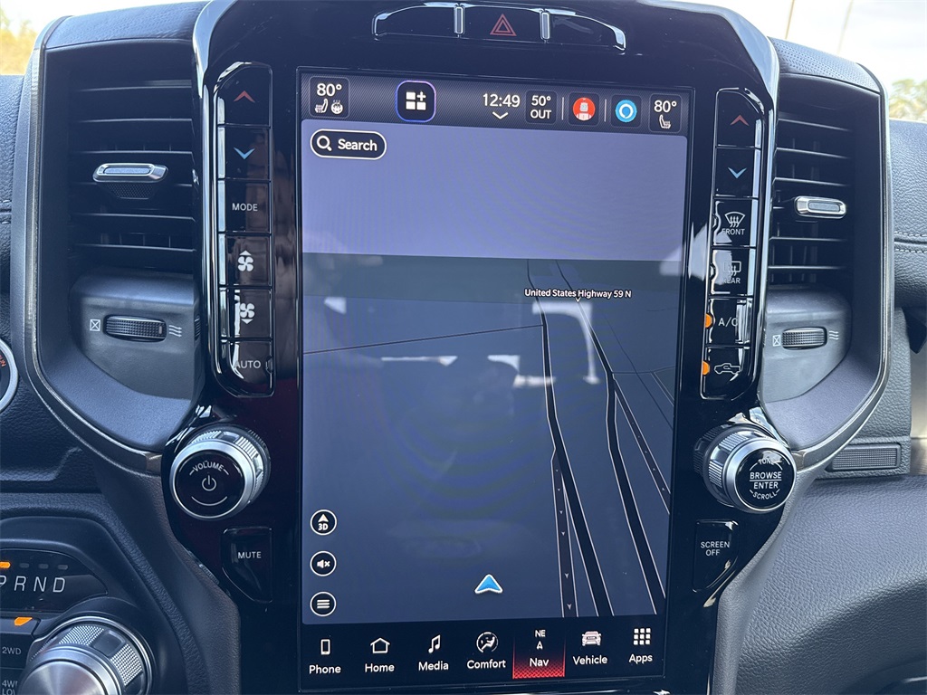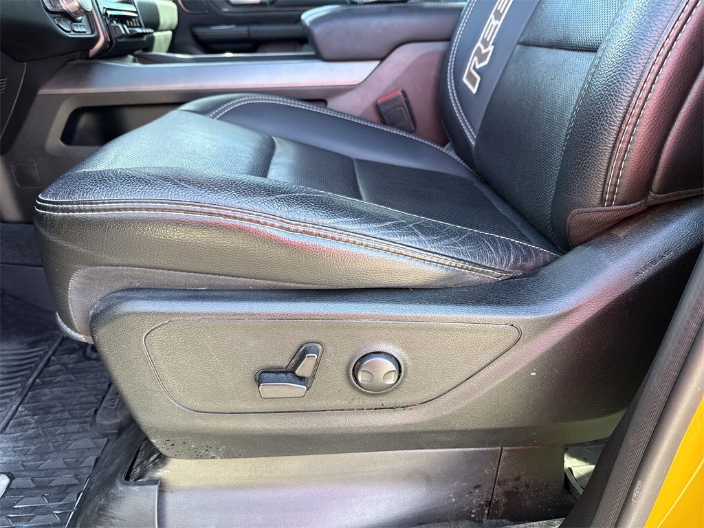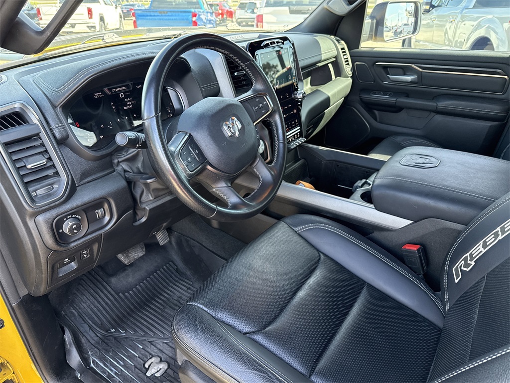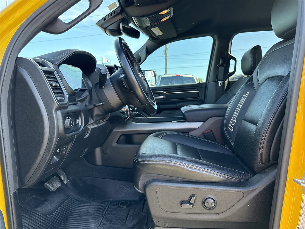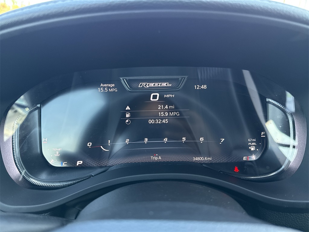 oor Console, Grille Surround 2 Black Texture 3 Black, Heated Front Seats, Heated Steering Wheel, Lux Leather Trimmed Bucket Seats, MOPAR Rebel Exterior Side Graphics, MOPAR Rebel Hood Decal, Power 2-Way Driver Lumbar Adjust, Power 2-Way Passenger Lumbar Adjust, Power 8-Way Driver & Passenger Seats, RAM Grille Badge - Black, Rear 60/40 Folding Seat, and Wheels: 18" x 8.0" Gloss Black), Rebel Level 2 Equipment Group (115V Auxiliary Rear Power Outlet, 12" Touchscreen Display, 2-Door Passive Entry, Front Door Locks, 2nd Row In Floor Storage Bins, 4G LTE Wi-Fi Hot Spot, Accent Color Door Handles, Apple CarPlay, Auto-Dimming Exterior Driver Mirror, Black Exterior Mirrors, Black Premium Power Mirrors, Connected Travel & Traffic Services, Connectivity - US/Canada, Convex Wide-Angle Exterior Mirror Insert, Disassociated Touchscreen Display, Exterior Mirrors Courtesy Lamps, Exterior Mirrors w/Heating Element, Exterior Mirrors w/Supplemental Signals, Foam Bottle Insert (Door Trim Panel), For Details, Visit DriveUconnect.com, For More Info, Call 800-643-2112, Global Telematics Box Module (TBM), Google Android Auto, GPS Antenna Input, GPS Navigation, harman/kardon 19 Speaker Premium Sound, HD Radio, Integrated Center Stack Radio, Integrated Voice Command w/Bluetooth, Media Hub w/2 Charge Only USBs, Off-Road Information Pages, ParkSense Front/Rear Park Assist w/Stop, Power 8-Way Driver Seat, Power Adjustable Pedals, Power-Folding Mirrors, Radio: Uconnect 5 Nav w/12.0" Display, Rain Sensitive Windshield Wipers, Rear Dome w/On/Off Switch Lamp, Rear Power Sliding Window, Rear Underseat Compartment Storage, Rear Window Defroster, Remote Start System, Security Alarm, SiriusXM Radio Service, SiriusXM w/360L, Sun Visors w/Illuminated Vanity Mirrors, Universal Garage Door Opener, and USB Host Flip), 3.92 Rear Axle Ratio, 4-Wheel Disc Brakes, 48V Belt Starter Generator, 6 Speakers, ABS brakes, Air Conditioning, Alloy wheels, AM/FM radio: SiriusXM with 360L, Apple CarPlay/Android Auto, Auto-dimming Rear-View mirror, Automatic temperature control, Blind Spot & Cross Path Detection, Brake assist, Class IV Receiver Hitch, Cloth/Vinyl Low Back Bucket Seats, Compass, Delay-off headlights, Driver door bin, Dual front impact airbags, Dual front side impact airbags, Electronic Stability Control, Emergency communication system: SiriusXM Guardian, Front anti-roll bar, Front Bucket Seats, Front Center Armrest w/Storage, Front dual zone A/C, Front fog lights, Front License Plate Bracket, Front reading lights, Front wheel independent suspension, Fully automatic headlights, Heated door mirrors, Illuminated entry, Instrument Cluster Theme 5 - Rebel 2, Leather steering wheel, Low tire pressure warning, MOPAR Spray In Bedliner, Navigation System, Occupant sensing airbag, Outside temperature display, Overhead airbag, Overhead console, Panic alarm, ParkView Rear Back-Up Camera, Passenger door bin, Passenger vanity mirror, Power door mirrors, Power steering, Power windows, Radio data system, Radio: Uconnect 5 Nav w/8.4" Display, Rear anti-roll bar, Rear seat center armrest, Rear step bumper, Remote keyless entry, Speed control, Split folding rear seat, Steering wheel mounted audio controls, Tachometer, Telescoping steering wheel, Tilt steering wheel, Traction control, Trailer Brake Control, Trip computer, Variably intermittent wipers, Voltmeter, and Wheels: 18" x 8.0" Painted Mid-Gloss BlacK.