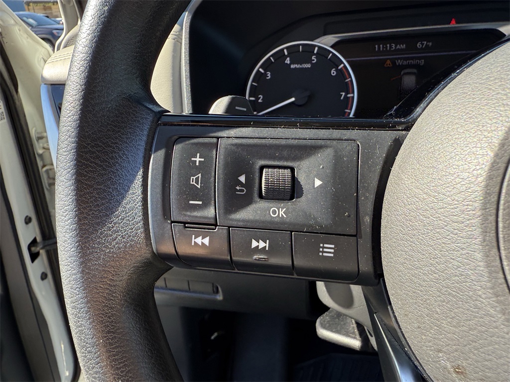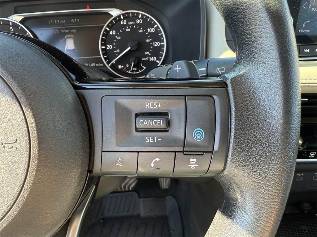 y-color, Chrome Rear Bumper Protector, Cloth Seat Trim, Delay-off headlights, Driver door bin, Driver vanity mirror, Dual front impact airbags, Dual front side impact airbags, Electronic Stability Control, Emergency communication system: NissanConnect Services, First Aid Kit, Floor Mats w/1-Piece Cargo Area Protector, Four wheel independent suspension, Front anti-roll bar, Front Bucket Seats, Front Center Armrest, Front dual zone A/C, Front reading lights, Fully automatic headlights, Heated door mirrors, Illuminated entry, Knee airbag, Low tire pressure warning, NissanConnect featuring Apple CarPlay and Android Auto, Occupant sensing airbag, Outside temperature display, Overhead airbag, Overhead console, Panic alarm, Passenger door bin, Passenger vanity mirror, Power door mirrors, Power driver seat, Power steering, Power windows, Radio data system, Rear anti-roll bar, Rear Parking Sensors, Rear seat center armrest, Rear side impact airbag, Rear window defroster, Rear window wiper, Remote keyless entry, Security system, Speed control, Speed-Sensitive Wipers, Split folding rear seat, Spoiler, Steering wheel mounted audio controls, Tachometer, Telescoping steering wheel, Tilt steering wheel, Traction control, Trip computer, Turn signal indicator mirrors, and Variably intermittent wipers.