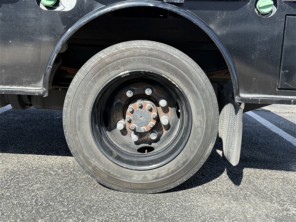 Black Frame-Mounted Front Recovery Hooks, Chevrolet Connected Access Capable, Cloth Seat Trim, Delay-off headlights, Driver door bin, Dual front impact airbags, Dual front side impact airbags, Dual rear wheels, Dual-Note Horn, Electronic Stability Control, Exterior Parking Camera Rear, Front Center Armrest w/Storage, Front License Plate Kit, Front reading lights, Front Stabilizer Bar, Frontal Passenger-Side Airbag Deactivation Switch, Fully automatic headlights, Limited-Slip Axle, Manual Regeneration Diesel Particulate Filter DPF, Occupant sensing airbag, OnStar & Chevrolet Connected Services Capable, Overhead airbag, Overhead console, Passenger cancellable airbag, Passenger door bin, Power steering, Power Take-Off Engine Control Provisions, Power Windows w/Driver Express Up & Down, Premium audio system: Chevrolet MyLink, Rear Shock Absorbers, Remote Keyless Entry, Single-Slot CD/MP3 Player, Single-Zone Air Conditioning, SiriusXM Radio, Speed control, Tachometer, Tilt steering wheel, Tool Kit w/Rim Wrench & Handle Only, Top Post Threaded Battery Jump Start Stud, Traction control, Trip computer, Variably intermittent wipers, Voltmeter, and Wheels: 19.5" x 6.75" Black Painted Hub Piloted Steel w/8-Holes.