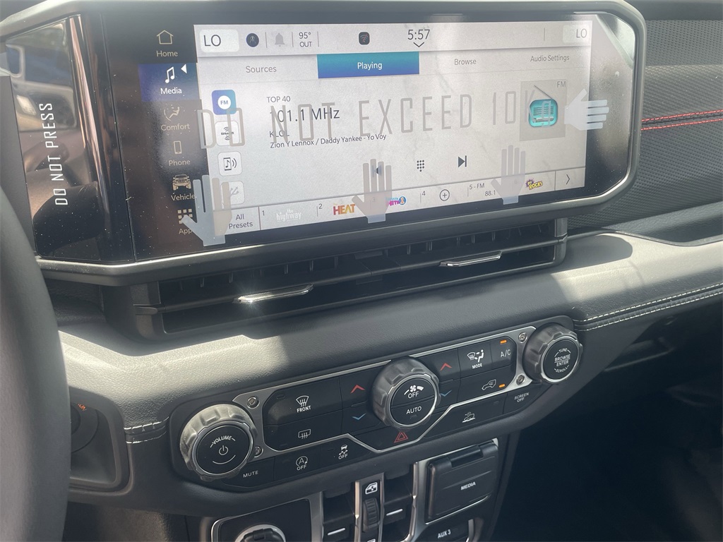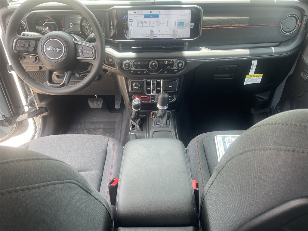 XM, Apple CarPlay, Apple CarPlay/Android Auto, Automatic temperature control, Black 3-Piece Hard Top, Brake assist, Cloth Low-Back Bucket Seats, Compass, Connectivity - US/Canada, Delay-off headlights, Driver door bin, Driver vanity mirror, Dual front impact airbags, Dual front side impact airbags, Electronic Stability Control, Emergency communication system: Jeep Connect, Freedom Panel Storage Bag, Front anti-roll bar, Front Bucket Seats, Front Center Armrest w/Storage, Front dual zone A/C, Front fog lights, Front License Plate Bracket, Front reading lights, Fully automatic headlights, Google Android Auto, Heated door mirrors, Illuminated entry, Integrated roll-over protection, Low tire pressure warning, MOPAR All-Weather Slush Mats, Occupant sensing airbag, Outside temperature display, Overhead airbag, Panic alarm, Passenger door bin, Passenger vanity mirror, Performance Suspension, Power door mirrors, Power steering, Power windows, Radio data system, Radio: Uconnect 5 w/12.3" Display, Rear anti-roll bar, Rear reading lights, Rear Sliding Window, Rear Window Defroster, Remote keyless entry, Security system, Speed control, Split folding rear seat, Steering wheel mounted audio controls, Tachometer, Telescoping steering wheel, Tilt steering wheel, Traction control, Trip computer, USB Host Flip, Variably intermittent wipers, Voltmeter, and Wheels: 17" x 7.5" Machined/Painted Black. 2025 Jeep Gladiator Rubicon 4D Crew Cab Anvil Clearcoat 17/22 City/Highway MPG Price includes: $500 - 2025 National 2025 Military Bonus Cash. Exp. 01/05/2026 $5500 - 2025 National Bonus Cash . Exp. 01/05/2026
