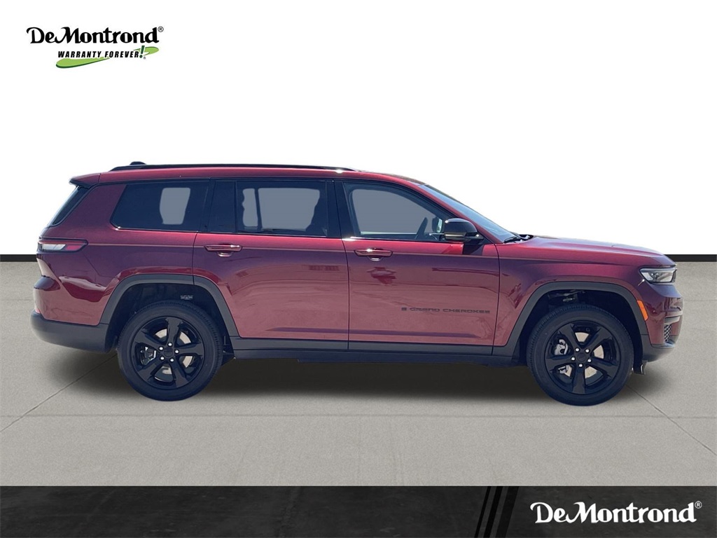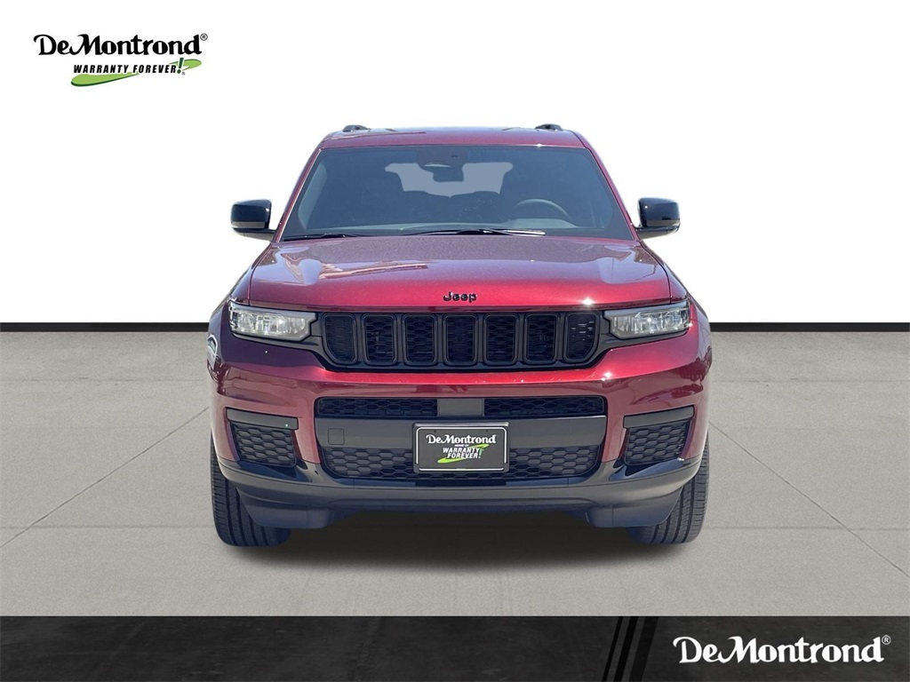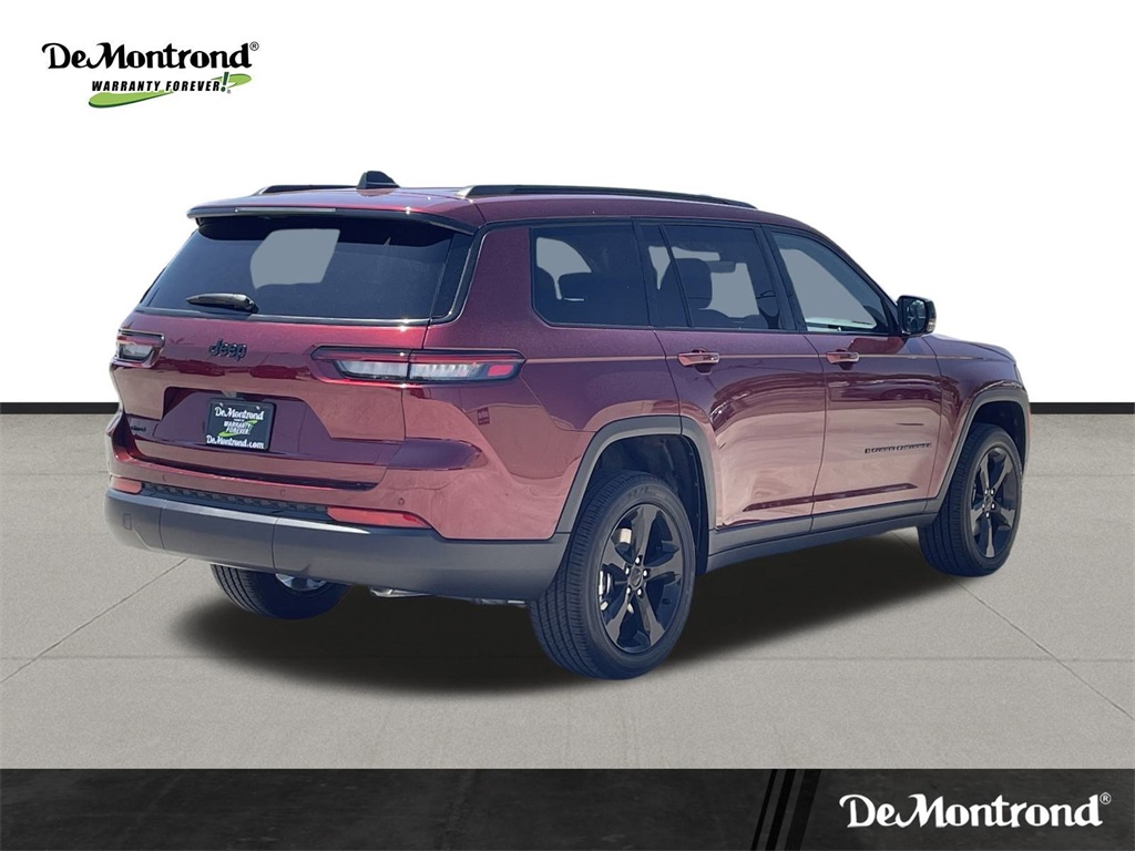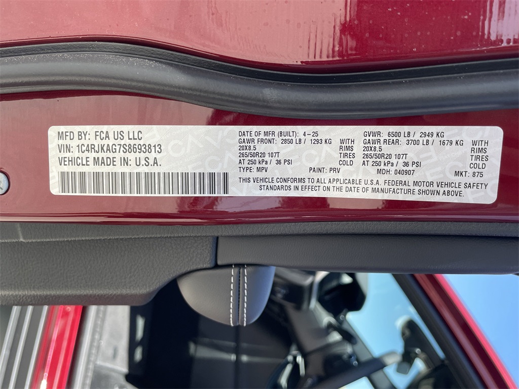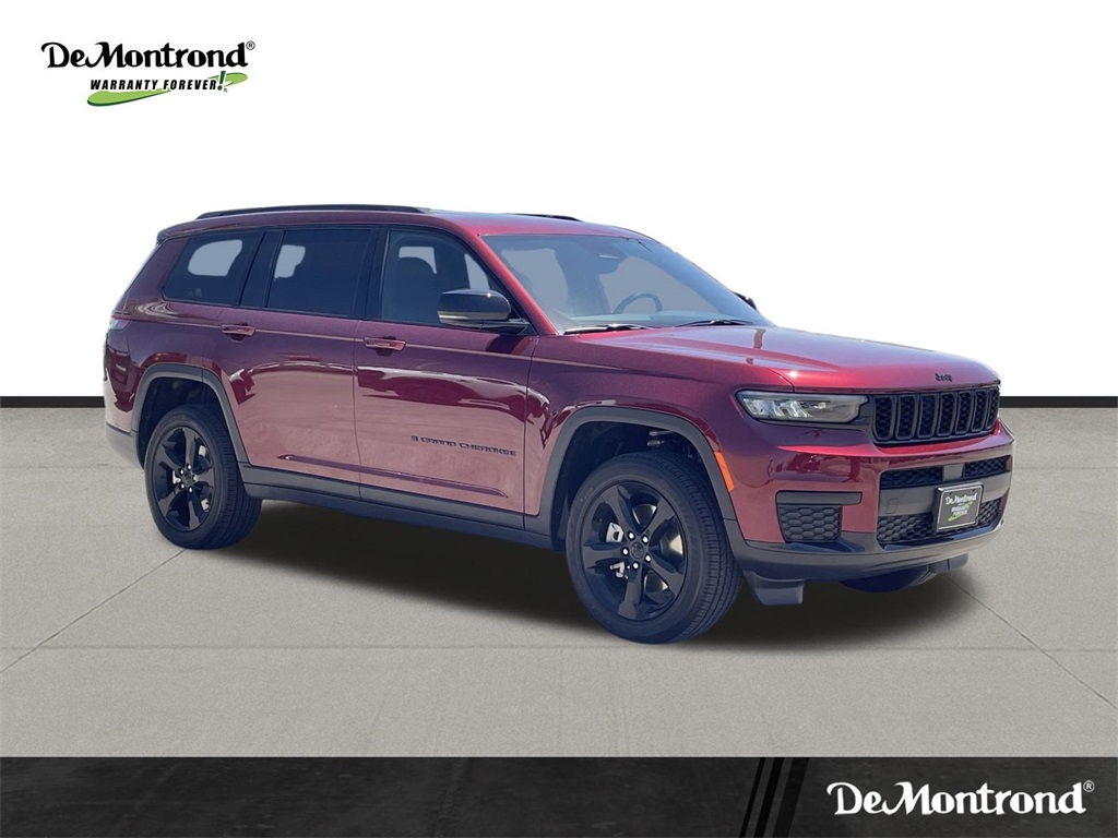 eel, Power Liftgate, Power Sunroof, Rain Sensitive Windshield Wipers, Remote Start System, Selectable Tire Fill Alert, Wheels: 18" x 8.0" Fully Painted Aluminum 1, and Wireless Charging Pad), 3.45 Rear Axle Ratio, 3rd row seats: split-bench, 4-Wheel Disc Brakes, 6 Speakers, ABS brakes, Air Conditioning, Alloy wheels, AM/FM radio: SiriusXM, Anti-whiplash front head restraints, Automatic temperature control, Brake assist, Bumpers: body-color, Cloth Seats, Compass, Delay-off headlights, Driver door bin, Driver vanity mirror, Dual front impact airbags, Dual front side impact airbags, Electronic Stability Control, Emergency communication system, Four wheel independent suspension, Front anti-roll bar, Front Bucket Seats, Front Center Armrest w/Storage, Front dual zone A/C, Front License Plate Bracket, Front reading lights, Fully automatic headlights, Heated door mirrors, Illuminated entry, Knee airbag, Low tire pressure warning, Manual Fold Seatbacks, Model Year Tracking, Normal Duty Suspension, Occupant sensing airbag, Outside temperature display, Overhead airbag, Overhead console, Panic alarm, ParkView Rear Back-Up Camera, Passenger door bin, Passenger vanity mirror, Power door mirrors, Power driver seat, Power steering, Power windows, Radio data system, Radio: Uconnect 5 w/8.4" Display, Rear air conditioning, Rear anti-roll bar, Rear reading lights, Rear window defroster, Rear window wiper, Reclining 3rd row seat, Remote keyless entry, Security system, Speed control, Speed-Sensitive Wipers, Split folding rear seat, Spoiler, Steering wheel mounted audio controls, Tachometer, Telescoping steering wheel, Tilt steering wheel, Traction control, Trip computer, Variably intermittent wipers, Voltmeter, Wheels: 18" x 8.0" Fully Painted Aluminum, and Wheels: 20" x 8.5" Gloss Black Painted Aluminum. 2025 Jeep Grand Cherokee L Altitude X 4D Sport Utility Velvet Red Pearlcoat 18/25 City/Highway MPG Price includes: $2000 - 2025 National Retail Bonus Cash . Exp. 11/03/2025 $500 - 2025 National 2025 Military Bonus Cash. Exp. 01/05/2026 $500 - 2025 National Jeep Monopoly Money Bonus Cash . Exp. 11/03/2025