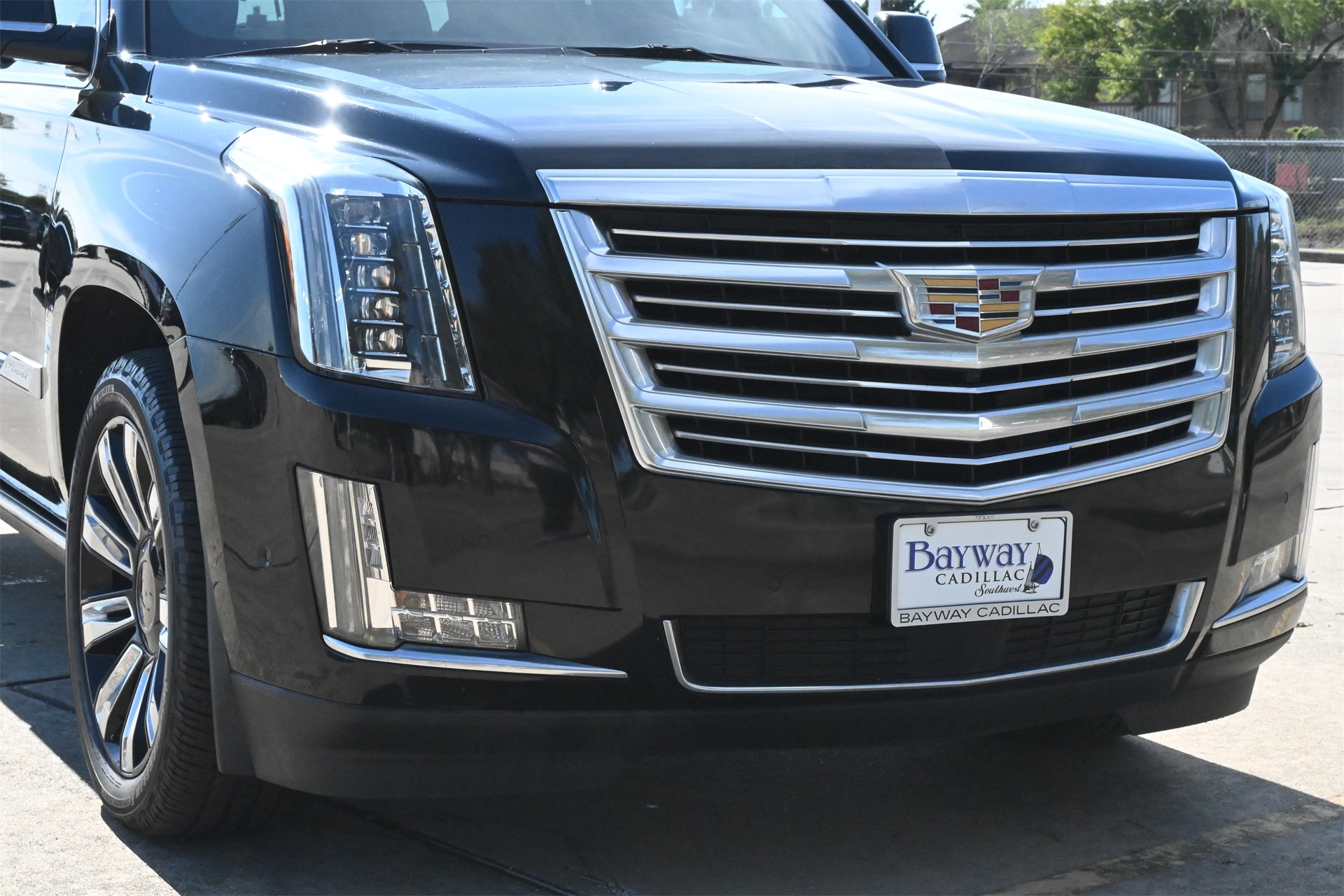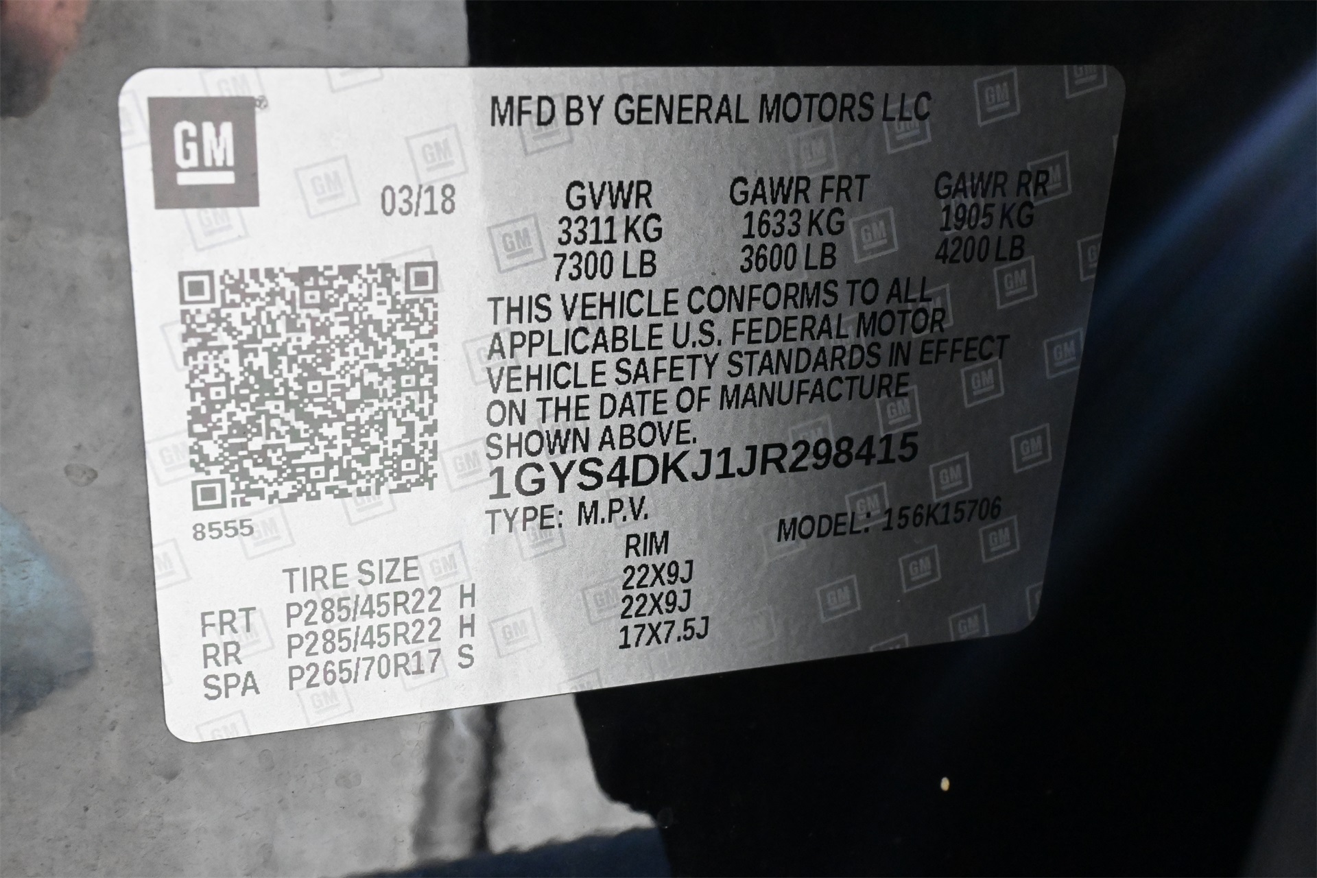 This 2018 Cadillac Escalade Platinum Edition is loaded with the following Factory Options:Driver Assist Package (Adaptive Full-Speed Range Cruise Control, Automatic Safety Belt Tightening, Electronic Powered Parking Brake, and Forward/Reverse Automatic Braking), Platinum Package (Cooled Console w/Covered Storage, Dual DVD Screens, Leather Wrapped IP/Console/Door, Microfiber Sueded Headliner, Platinum Sill Plates, Premium Floor Mats, Sumi Black Tamo Ash Unique Exotic Wood, and Unique Grille Desig