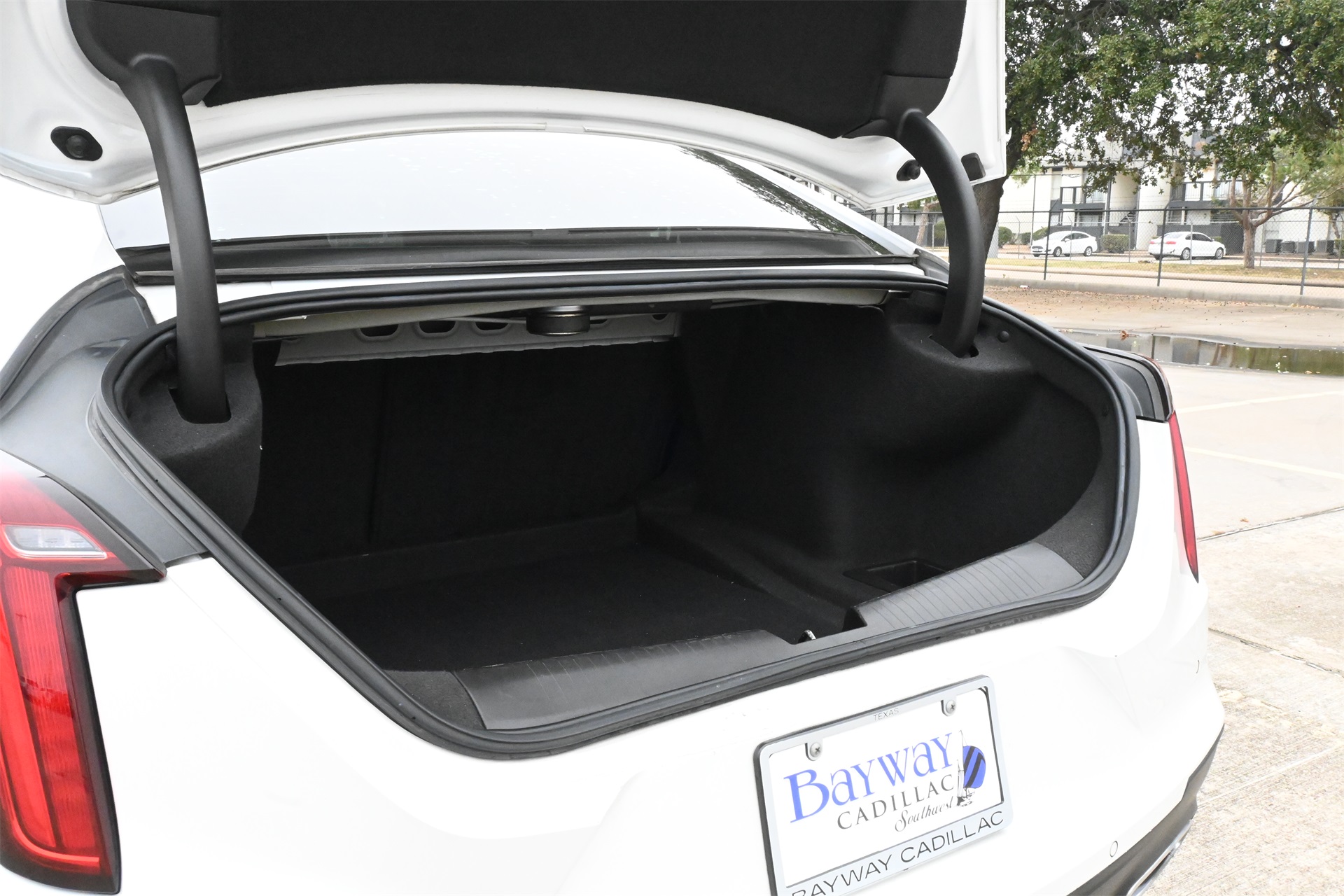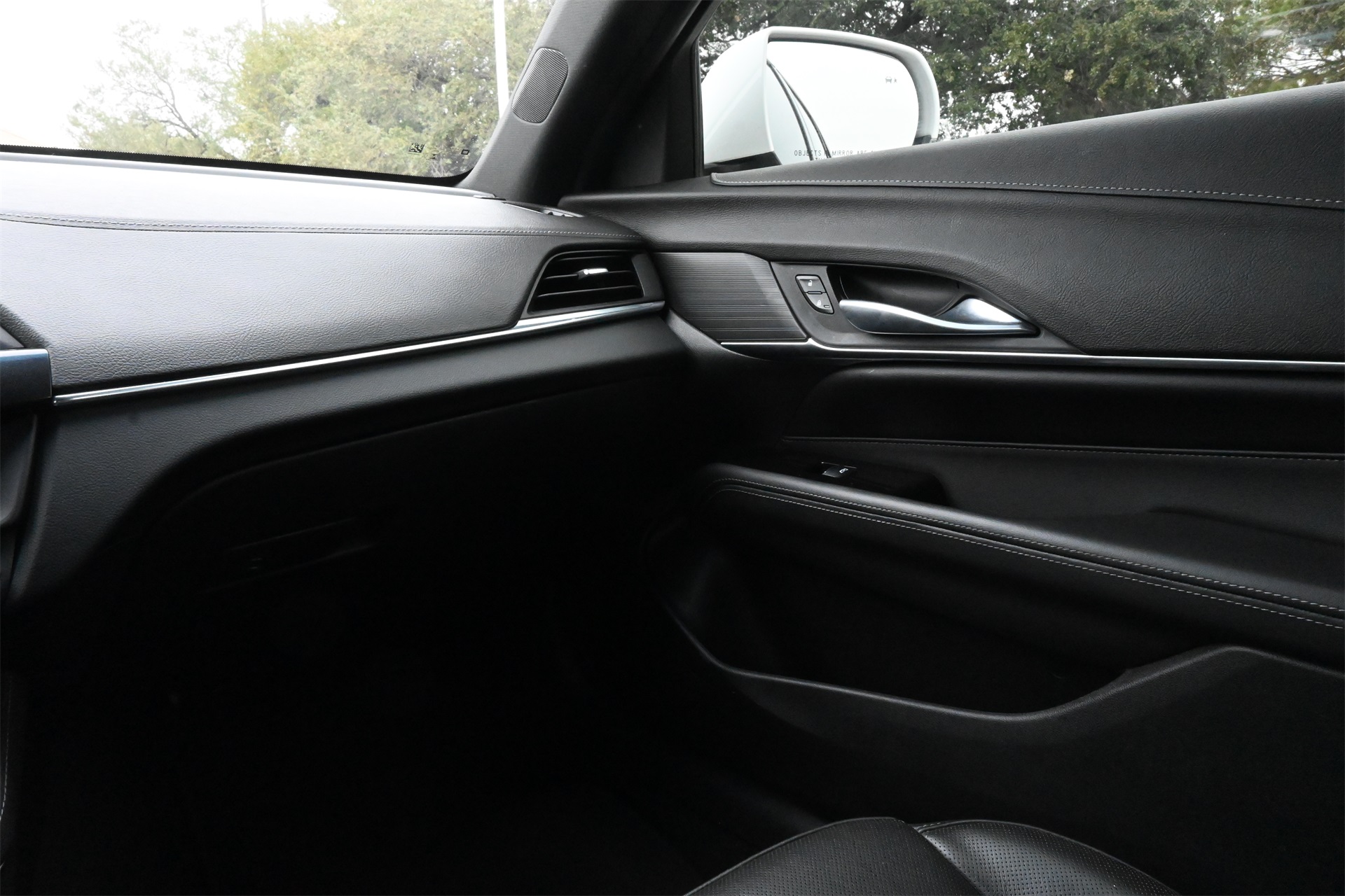 ffic Alert), Preferred Equipment Group 1SD (4-Wheel Disc Antilock Brakes, Automatic Emergency Braking, Body Color Rocker Moldings, Driver 2-Way Power Lumbar Seat Adjuster, Dual Digital Driver Information Center Display, Electronic Cruise Control w/Set & Resume Speed, Front Passenger 2-Way Power Lumbar Seat Adjuster, HD Rear Vision Camera, Leather-Wrapped Steering Wheel, LED Reflective Windshield Alert, Rear Park Assist, and Steering Wheel Mounted Paddle Shift Controls), 4-Wheel Disc Brakes, 8 Speakers, ABS brakes, Air Conditioning, Alloy wheels, AM/FM radio: SiriusXM, Anti-whiplash front head restraints, Apple CarPlay/Android Auto, Auto-dimming door mirrors, Auto-dimming Rear-View mirror, Automatic Stop/Start w/Disable, Automatic temperature control, Brake assist, Bumpers: body-color, Chrome Wheel Locks (LPO), Compass, Delay-off headlights, Driver door bin, Driver vanity mirror, Dual front impact airbags, Dual front side impact airbags, Electronic Stability Control, Emergency communication system: OnStar and Cadillac connected services capable, Exterior Parking Camera Rear, Four wheel independent suspension, Front anti-roll bar, Front Bucket Seats, Front Center Armrest, Front dual zone A/C, Front License Plate Bracket, Front reading lights, Fully automatic headlights, Garage door transmitter, HD Radio, Heated door mirrors, Illuminated entry, Knee airbag, Leather Seating Surfaces, Leather Shift Knob, Leather steering wheel, Low tire pressure warning, Memory seat, Memory Settings, Occupant sensing airbag, Outside temperature display, Overhead airbag, Overhead console, Panic alarm, Passenger door bin, Passenger vanity mirror, Power door mirrors, Power driver seat, Power passenger seat, Power steering, Power Sunroof w/Express-Open & Venting, Power windows, Premium 8-Speaker Audio System Feature, Radio data system, Radio: Cadillac User Experience, Rain sensing wipers, Rear anti-roll bar, Rear reading lights, Rear seat center armrest, Rear window defroster, Remote keyless entry, SiriusXM w/360L, Speed control, Speed-sensing steering, Split folding rear seat, Steering wheel mounted audio controls, Tachometer, Telescoping steering wheel, Tilt steering wheel, Traction control, Trip computer, Turn signal indicator mirrors, Variably intermittent wipers, Voltmeter, and Wheels: 18" Alloy w/Sterling Silver Finish. Crystal White Tricoat RWD 8-Speed Automatic 2.0L Turbocharged CARFAX 1-Owner, Clean CARFAX!, Local Trade, Bluetooth, Apple Carplay / Android Auto.