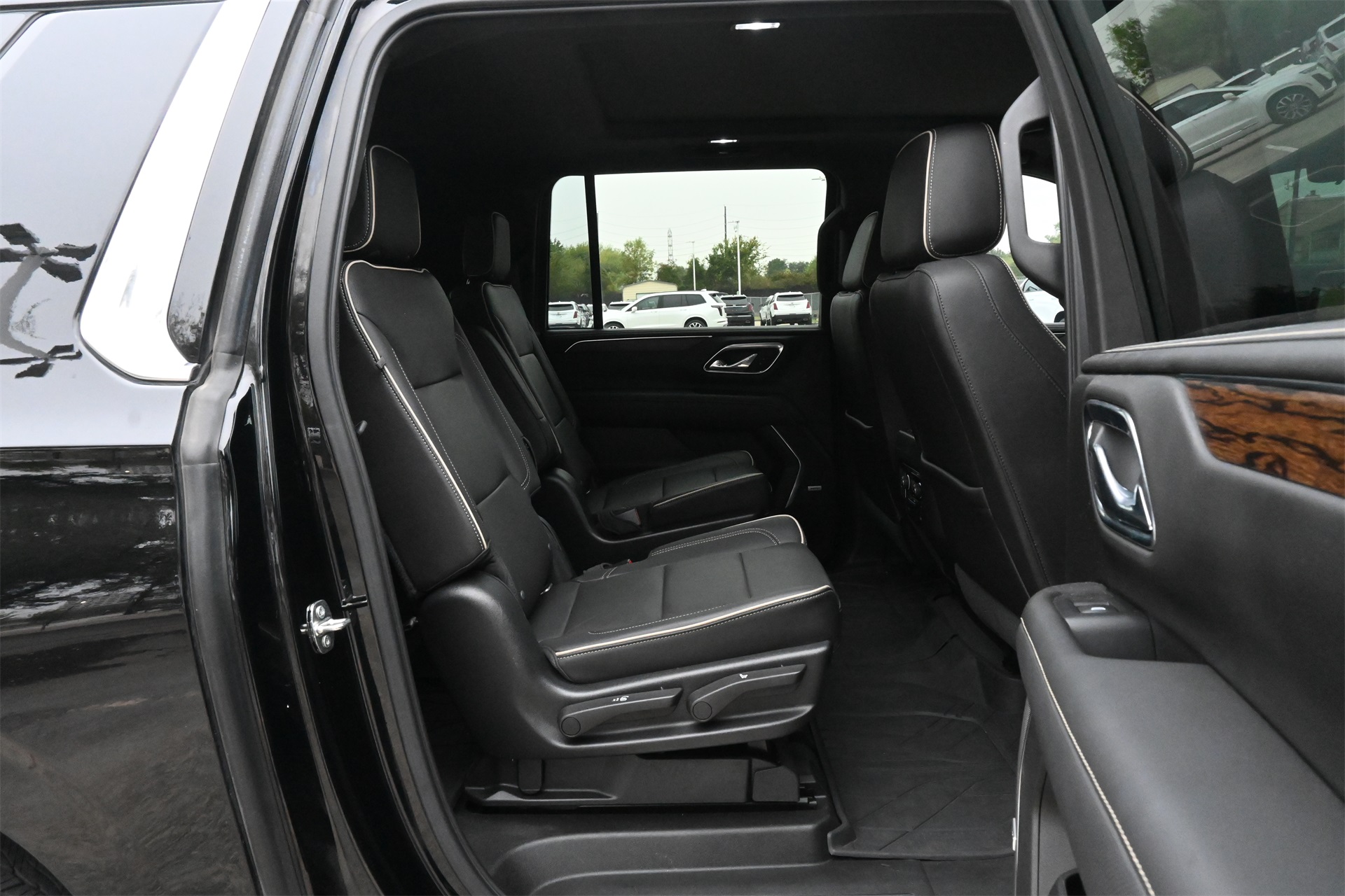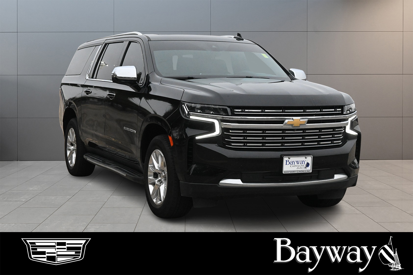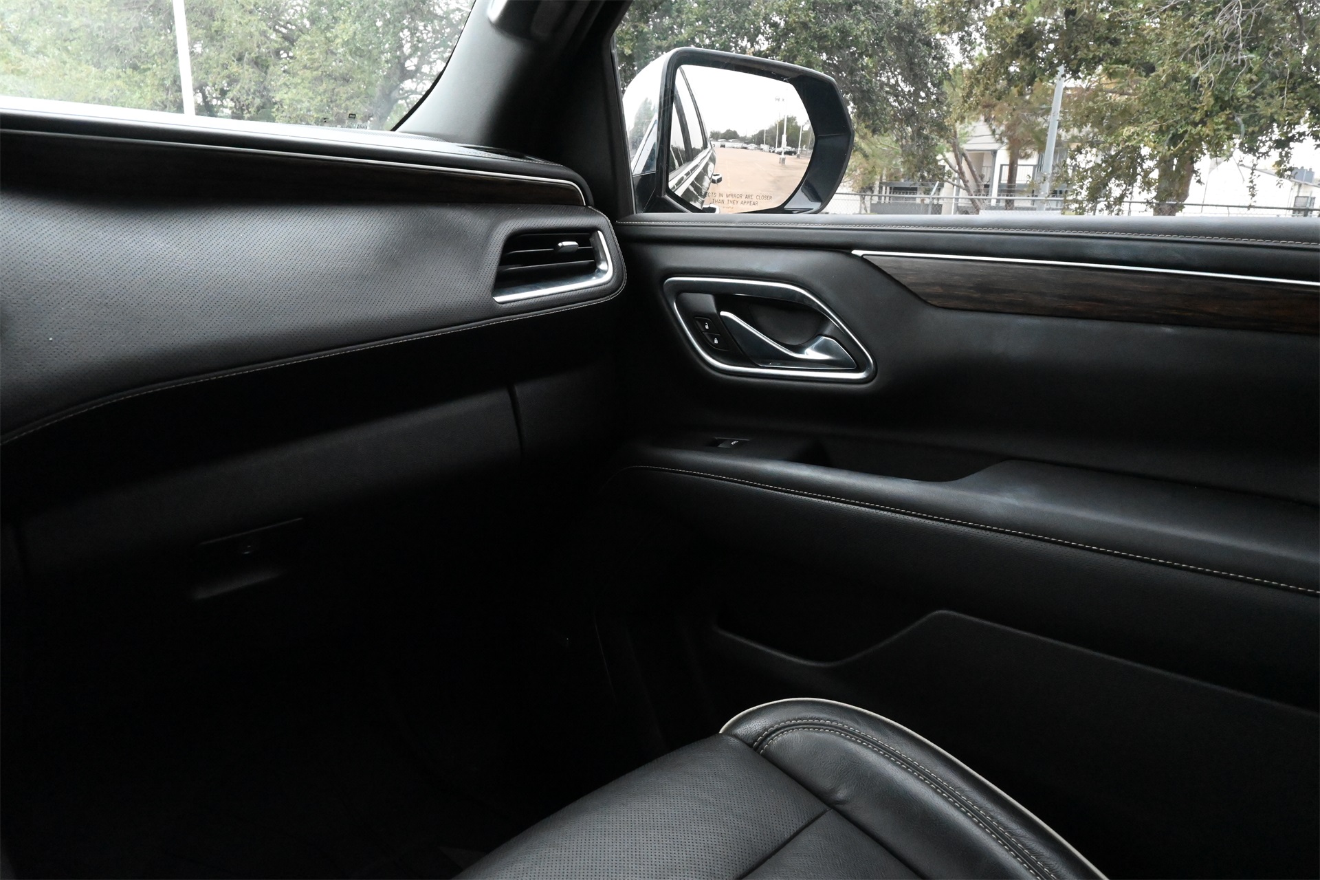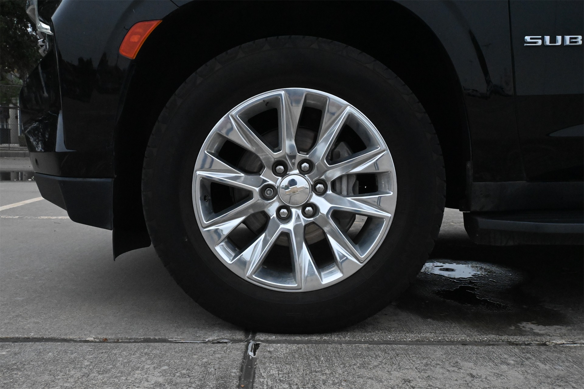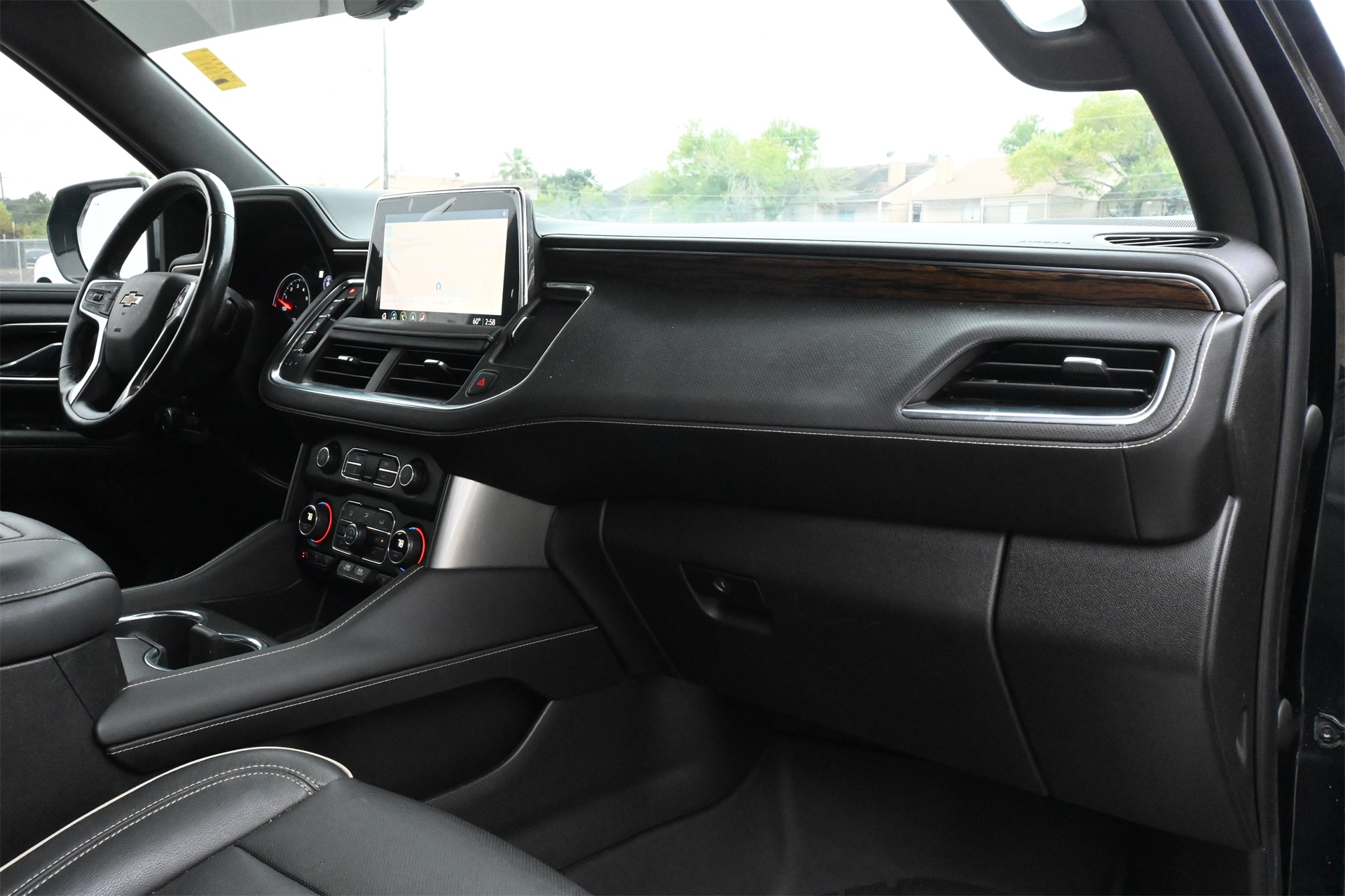 ing Package (Extra Capacity Cooling System), Preferred Equipment Group 1LZ (12-Way Power Driver & Passenger Seat Adjusters, 1st & 2nd Row Color-Keyed Carpeted Floor Mats, 2 USB Data Ports, 3rd Row 60/40 Power-Folding Split-Bench, Auto-Dimming Inside Rear-View Mirror, Automatic Heated Steering Wheel, Bose 10-Speaker Surround w/CenterPoint, Bright Front & Rear Door Sill Plates, Chrome Door Handles w/Body-Color Strip, Chrome Mirror Caps, Color-Keyed Carpeting Floor Covering, Driver & Front Outboard Passenger Airbags, Dual Exhaust System, Enhanced Driver Information Center, Floor Console w/Storage Area, Front & Rear Park Assist, Hands-Free Rear Power Programmable Liftgate, HD Radio, Heated & Ventilated Driver & Front Passenger Seats, Heated 2nd Row Outboard Seats, Heated Driver & Front Passenger Seats, Infotainment Display, Lane Change Alert w/Side Blind Zone Alert, Lane Keep Assist w/Lane Departure Warning, Leather-Wrapped Steering Wheel, LED Daytime Running Lamps, Memory Settings, Outside Heated Power-Adjustable Mirrors, Power Release 2nd Row Bucket Seats, Power Tilt & Telescopic Steering Column, Rear Cross Traffic Alert, Remote Start, Safety Alert Seat, SiriusXM Radio w/360L, and Universal Home Remote), Premium Package (Adaptive Cruise Control, Dual-Pane Power Panoramic Sunroof, and Enhanced Automatic Emergency Braking), 10 Speakers, 20" x 9" Polished Aluminum Wheels, 3.23 Rear Axle Ratio, 3rd row seats: split-bench, 4-Wheel Disc Brakes, ABS brakes, Adaptive suspension, Air Conditioning, Alloy wheels, AM/FM radio: SiriusXM with 360L, Apple CarPlay/Android Auto, Auto High-beam Headlights, Auto-dimming door mirrors, Auto-dimming Rear-View mirror, Auto-leveling suspension, Automatic temperature control, Brake assist, Bumpers: body-color, Compass, Delay-off headlights, Driver door bin, Driver vanity mirror, Dual front impact airbags, Dual front side impact airbags, Electronic Stability Control, Emergency communication system: OnStar and Chevrolet connected services capable, Four wheel independent suspension, Front anti-roll bar, Front Bucket Seats, Front Center Armrest, Front dual zone A/C, Front reading lights, Fully automatic headlights, Garage door transmitter, Heated door mirrors, Heated front seats, Heated rear seats, Heated steering wheel, Illuminated entry, Leather steering wheel, Low tire pressure warning, Magnetic Ride Control Suspension, Memory seat, Navigation System, Occupant sensing airbag, Outside temperature display, Overhead airbag, Overhead console, Panic alarm, Passenger door bin, Passenger vanity mirror, Perforated Leather Seating Surfaces, Power door mirrors, Power driver seat, Power Liftgate, Power passenger seat, Power steering, Power windows, Premium audio system: Chevrolet Infotainment 3 Premium, Radio: Chevrolet Infotainment 3 Premium System, Rain sensing wipers, Rear air conditioning, Rear anti-roll bar, Rear reading lights, Rear window defroster, Rear window wiper, Remote keyless entry, Roof rack: rails only, Security system, Speed control, Speed-sensing steering, Split folding rear seat, Spoiler, Steering wheel memory, Steering wheel mounted audio controls, Tachometer, Telescoping steering wheel, Tilt steering wheel, Traction control, Trip computer, Turn signal indicator mirrors, Variably intermittent wipers, Ventilated front seats, Voltmeter, and Wheel Locks (Set of 4) (LPO) Black RWD 10-Speed Automatic with Overdrive EcoTec3 5.3L V8 CARFAX 1-Owner, Clean CARFAX!, Non-Smoker, Local Trade, Bluetooth, Apple Carpla