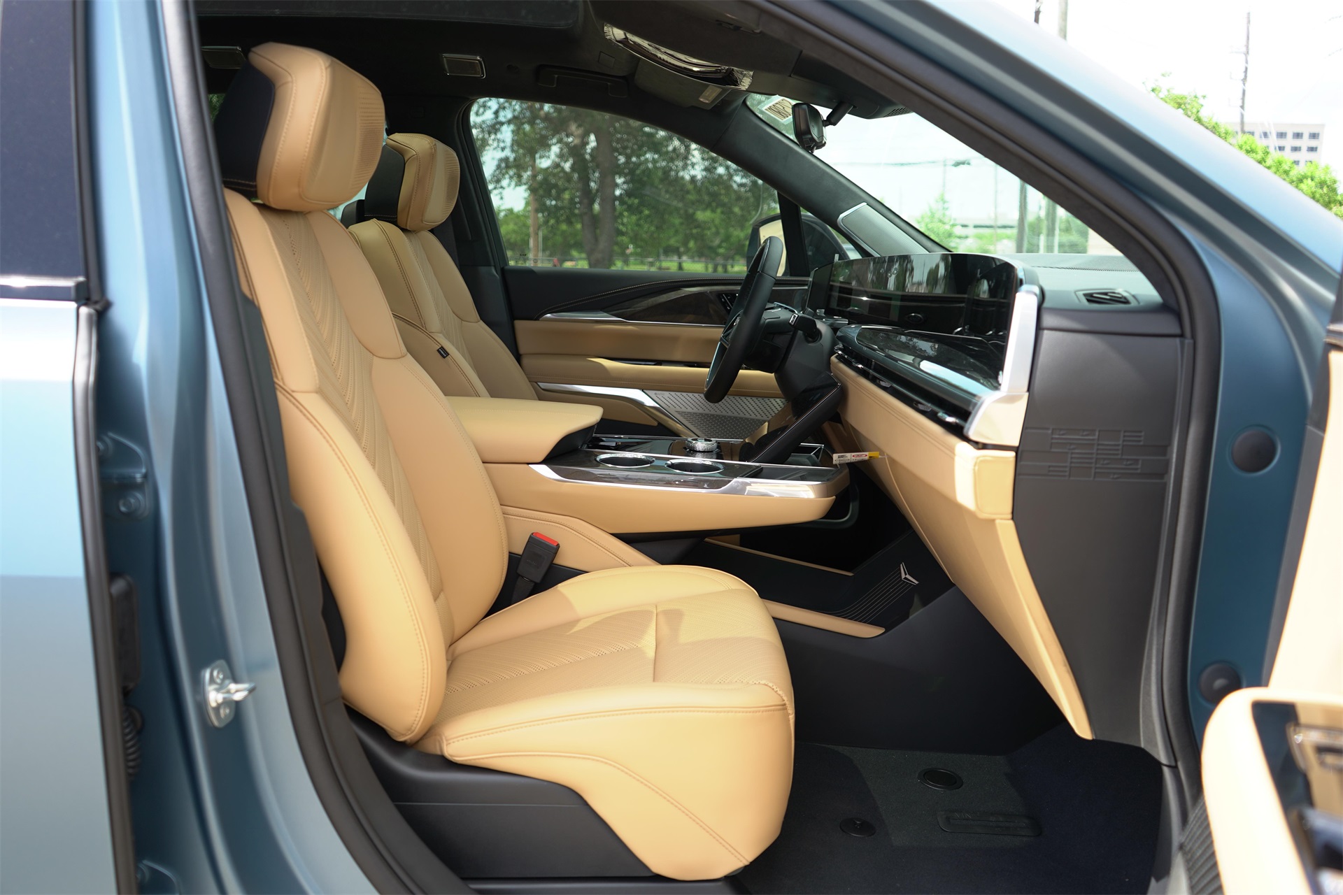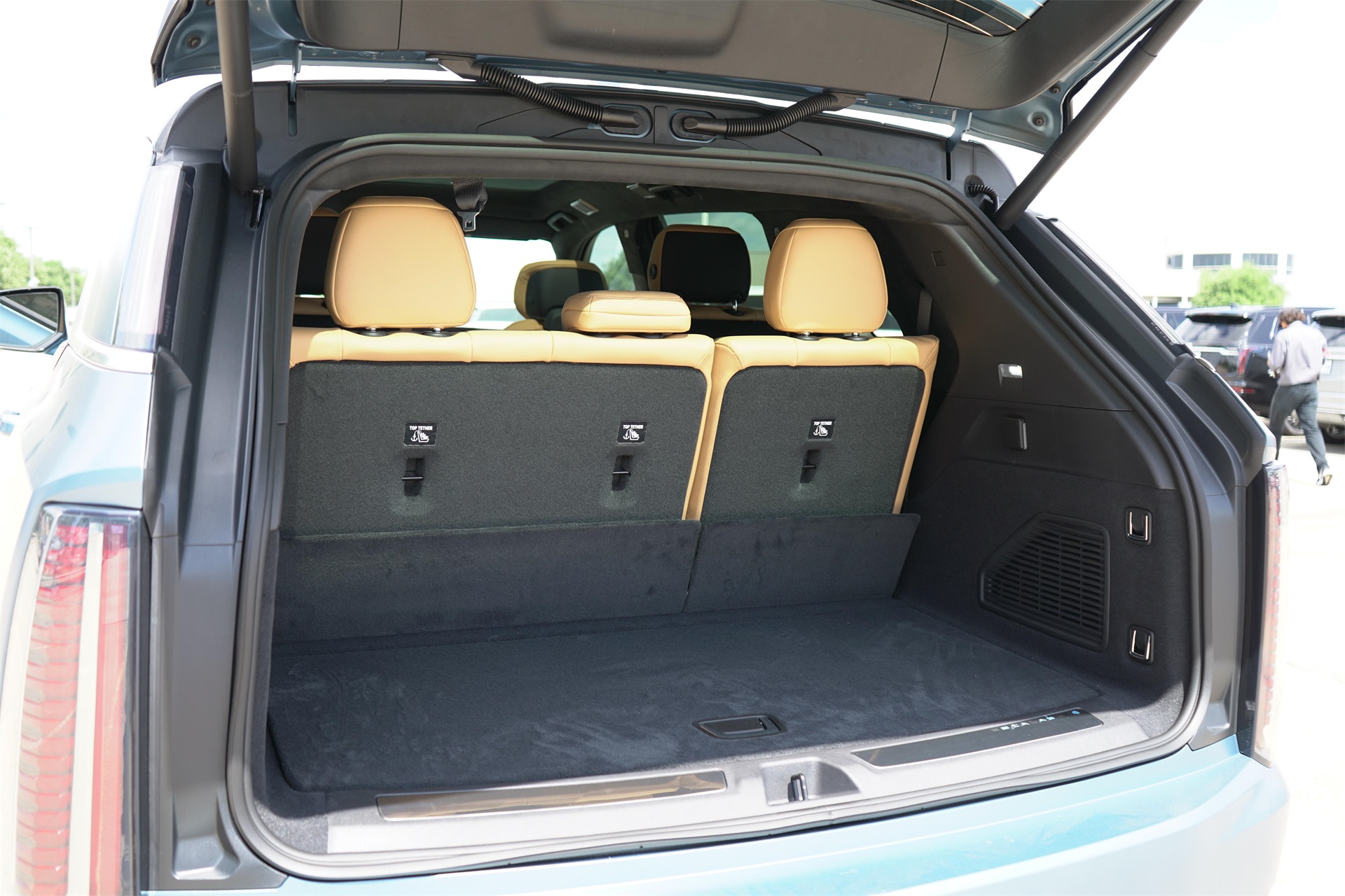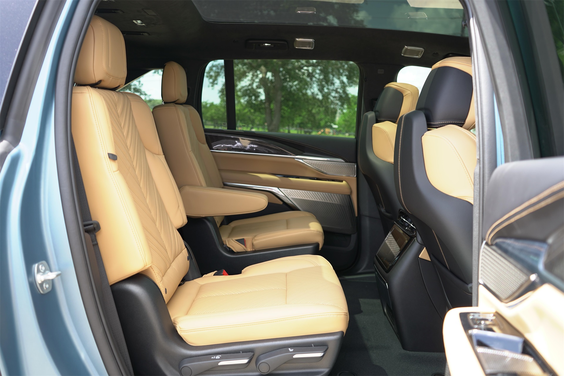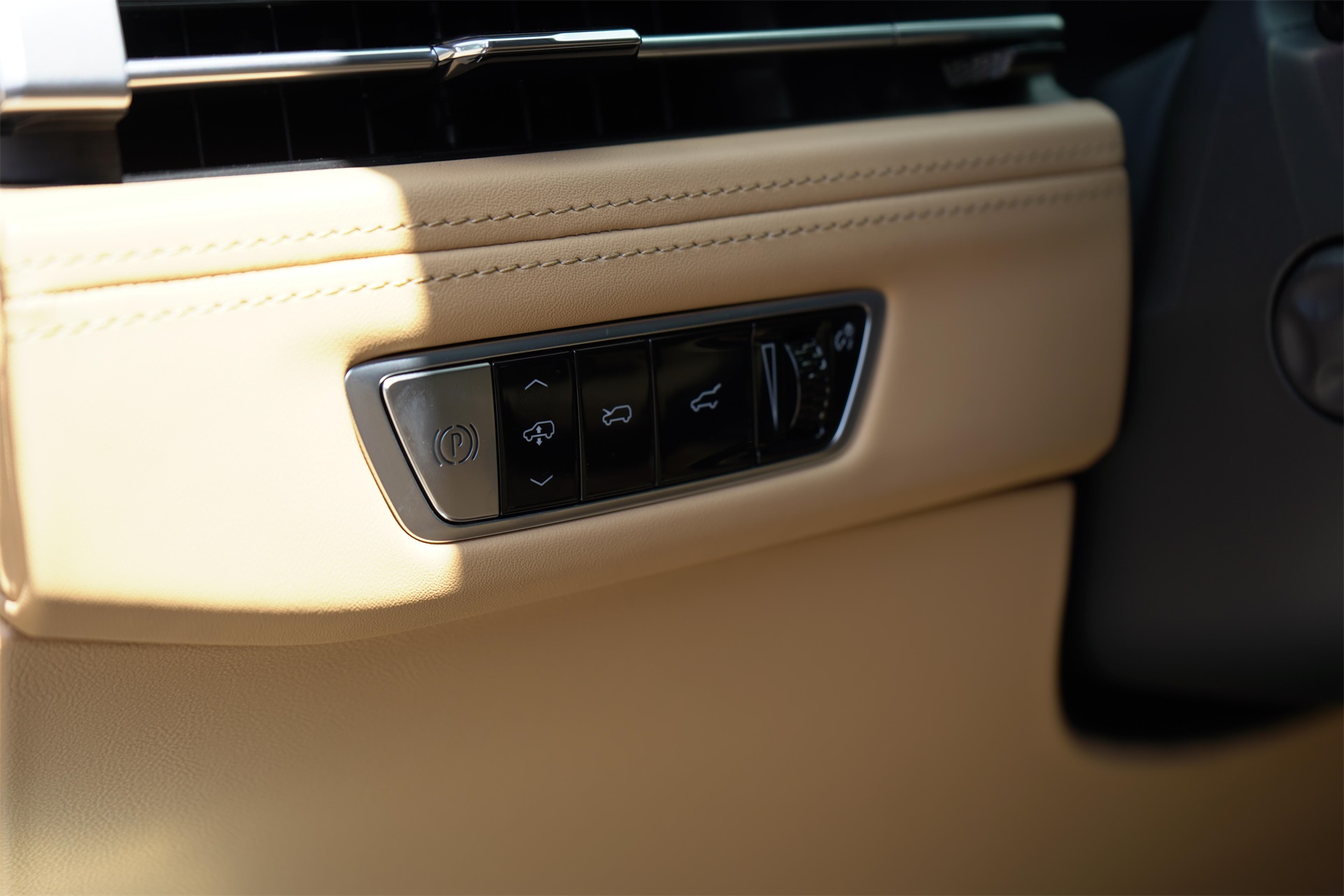 imming door mirrors, Auto-dimming Rear-View mirror, Auto-leveling suspension, Automatic temperature control, Brake assist, Bumpers: body-color, Compass, Delay-off headlights, Driver door bin, Driver vanity mirror, Dual front impact airbags, Dual front side impact airbags, Electronic Stability Control, Emergency communication system: OnStar and Cadillac connected services capable, Four wheel independent suspension, Front anti-roll bar, Front Bucket Seats, Front Center Armrest, Front dual zone A/C, Front License Plate Bracket, Front reading lights, Fully automatic headlights, Garage door transmitter, Google Built-in, Heads-Up Display, Heated door mirrors, Heated Driver and Front Passenger Seats, Heated front seats, Heated rear seats, Heated steering wheel, HVAC memory, Illuminated entry, Knee airbag, Leather steering wheel, Low tire pressure warning, Magnetic Ride Control Suspension, Memory seat, Navigation system: Google Automotive Services Capable, Occupant sensing airbag, Outside temperature display, Overhead airbag, Overhead console, Panic alarm, Passenger door bin, Passenger vanity mirror, Power door mirrors, Power driver seat, Power Liftgate, Power passenger seat, Power steering, Power windows, Radio data system, Radio: Infotainment Experience, Rain sensing wipers, Rear air conditioning, Rear anti-roll bar, Rear dual zone A/C, Rear reading lights, Rear window defroster, Rear window wiper, Reconfigurable Full-Color Head-Up Display, Remote keyless entry, Security system, SiriusXM with 360L Trial Subscription, Speed control, Speed-sensing steering, Split folding rear seat, Spoiler, Steering wheel mounted audio controls, Telescoping steering wheel, Tilt steering wheel, Traction control, Trip computer, Turn signal indicator mirrors, Variably intermittent wipers, Ventilated front seats, and Wheels: 24" 7-Spoke Machine Face Alloy.