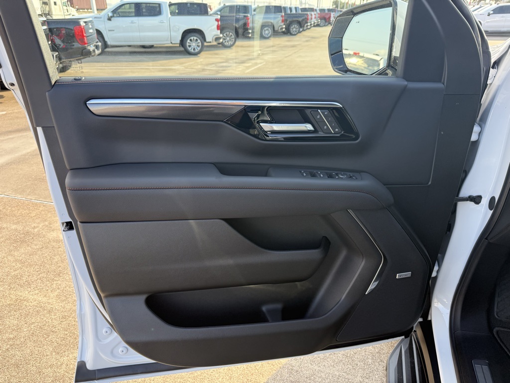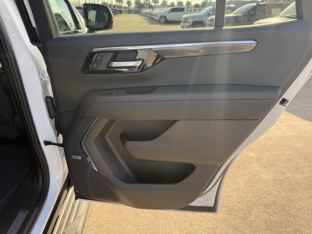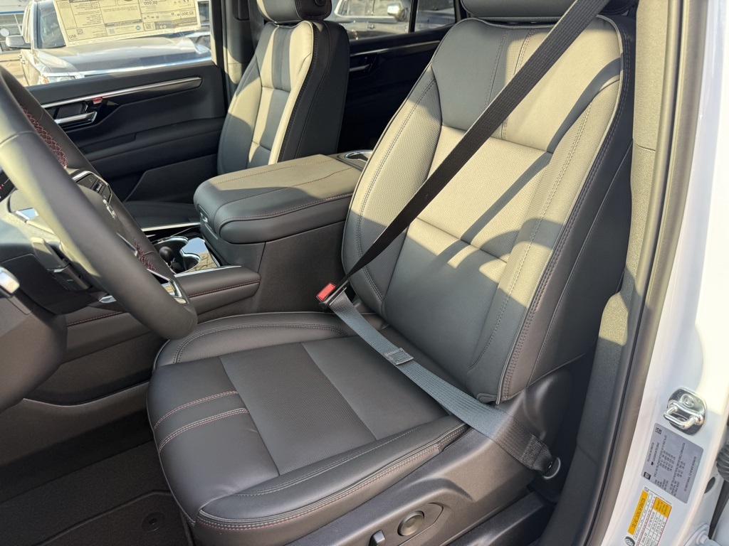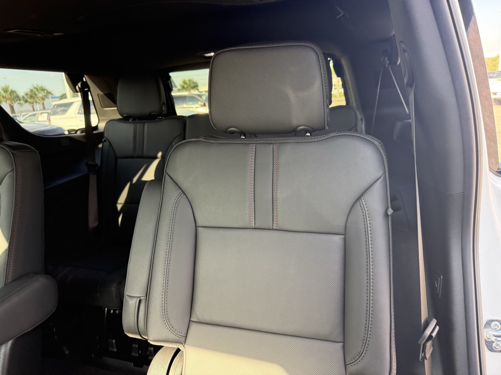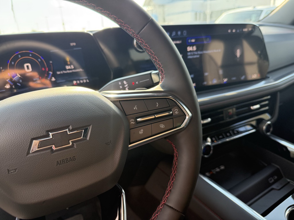 d with CenterPoint, (DXR) outside heated power-adjustable, power-folding, body-color mirrors with driver-side auto-dimming and integrated turn signal indicators, (KI3) heated steering wheel, (KA6) second row outboard heated seats, (ATT) second row power 60/40 split-folding bench seats, (AS8) third row power 60/40 split-folding bench seats, (TGE) LED animated headlamps and (TAU) LED animated tail lamps, SUNROOF, POWER PANORAMIC, DUAL-PANE, TILT-SLIDING with express-open and close and power sunshade, SEATS, SECOND ROW BUCKET, POWER RELEASE, ENGINE, 5.3L ECOTEC3 V8 with Dynamic Fuel Management, Direct Injection and Variable Valve Timing, includes aluminum block construction (355 hp [265 kW] @ 5600 rpm, 383 lb-ft of torque [518 Nm] @ 4100 rpm) (STD), TRANSMISSION, 10-SPEED AUTOMATIC electronically controlled with overdrive, includes Traction Select System including tow/haul (STD), AUDIO SYSTEM, 17.7 DIAGONAL ADVANCED COLOR LCD DISPLAY with Google built-in compatibility (select service plan required, terms and limitations apply), including navigation capability, connected apps, personalized profiles for each drivers settings, Natural Voice Recognition and Phone Integration (STD), SUSPENSION, PREMIUM SMOOTH RIDE (STD). Chevrolet RST with Summit White exterior and Jet Black/Victory Red interior features a 8 Cylinder Engine with 355 HP at 5600 RPM*.