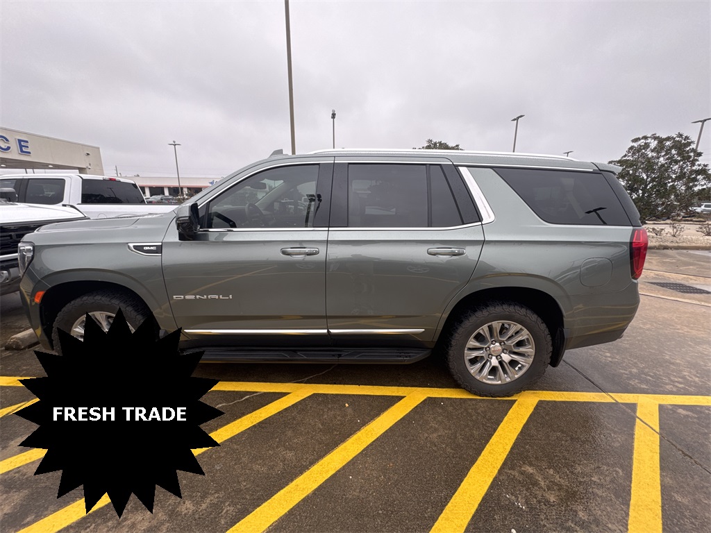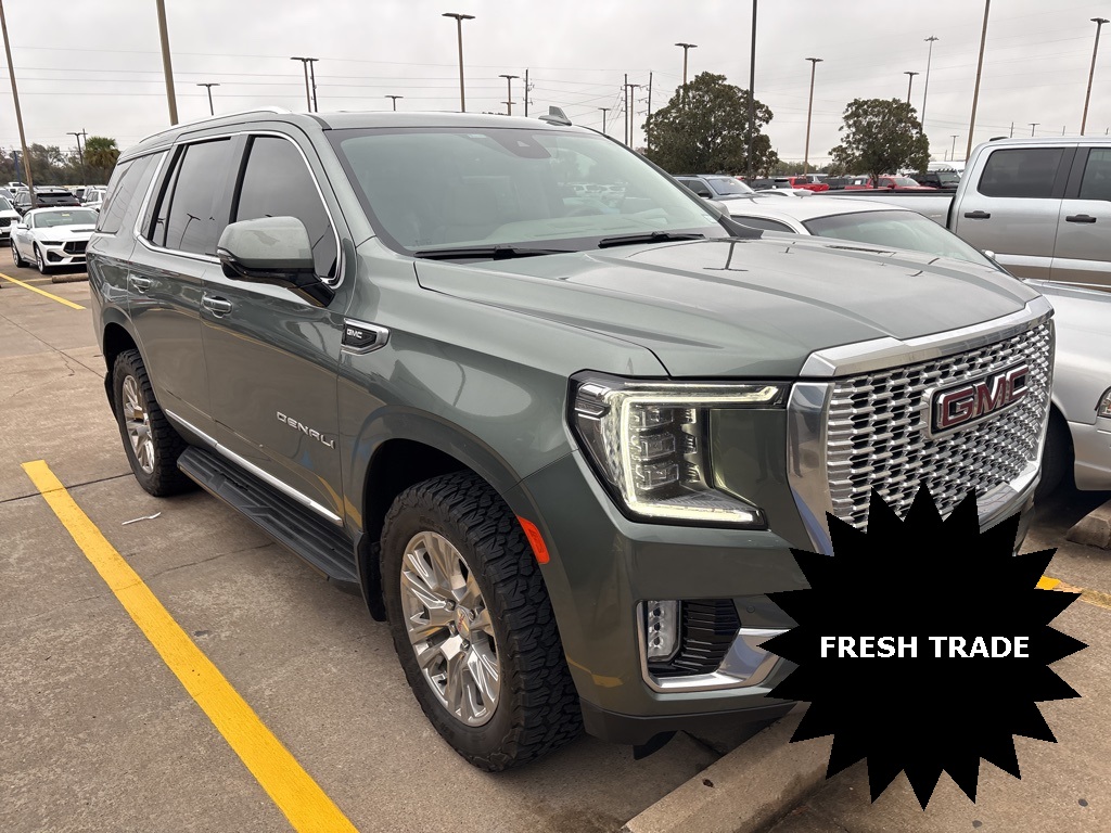 Recent Arrival! Clean CARFAX. Frosted Pine Metallic 2023 GMC Yukon Denali 4WD 10-Speed Automatic with Overdrive EcoTec3 6.2L V8 4WD. License Plate Front Mounting Package, Preferred Equipment Group 5SA (15" Diagonal Multi-Color Head-Up Display, 2 Presets For Outside Rearview Mirrors, 3 Years of GMC Connected Services, 3 Years of OnStar Safety & Security, 3rd Row 60/40 Power-Folding Split-Bench Seat, Bose 14-Speaker Surround w/CenterPoint, Bright Front & Rear Door Sill Plates, Chrome Door Handles