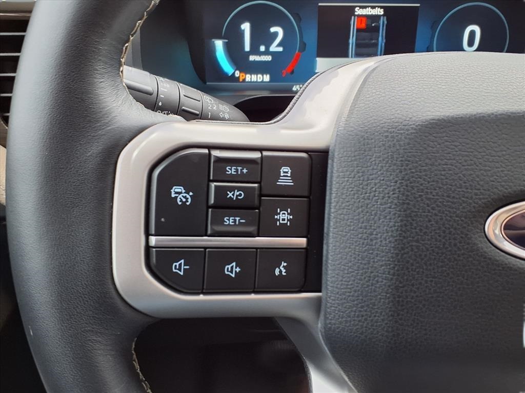 ve Touchscreen, 3.31 Axle Ratio, 360-Degree Camera w/Split View, 3rd row seats: split-bench, 4-Wheel Disc Brakes, ABS brakes, Adjustable pedals, Advanced Cargo Manager, Air Conditioning, Alloy wheels, AM/FM radio: SiriusXM with 360L, Auto High-beam Headlights, Auto-dimming door mirrors, Auto-dimming Rear-View mirror, Automatic temperature control, Brake assist, Bumpers: body-color, Compass, Connected Navigation, Delay-off headlights, Driver door bin, Driver vanity mirror, Dual front impact airbags, Dual front side impact airbags, Electronic Stability Control, Emergency communication system: SYNC 4 911 Assist, Exterior Parking Camera Rear, Four wheel independent suspension, Front anti-roll bar, Front Bucket Seats, Front Center Armrest, Front dual zone A/C, Front fog lights, Front License Plate Bracket, Front reading lights, Fully automatic headlights, Garage door transmitter, Heated & Ventilated Leather Front Captain's Chairs, Heated door mirrors, Heated front seats, Heated rear seats, Heated steering wheel, Illuminated entry, Instrument Panel Cluster, Leather steering wheel, Low tire pressure warning, Memory seat, Navigation system: Connected Navigation, Occupant sensing airbag, Outside temperature display, Overhead airbag, Overhead console, Panic alarm, Passenger door bin, Passenger vanity mirror, Pedal memory, Power door mirrors, Power driver seat, Power Liftgate, Power moonroof, Power passenger seat, Power steering, Power windows, Radio data system, Radio: B&O Sound System by Bang & Olufsen, Rain sensing wipers, Rear air conditioning, Rear anti-roll bar, Rear reading lights, Rear window defroster, Rear window wiper, Reclining 3rd row seat, Remote keyless entry, Reverse Brake Assist, Security system, SiriusXM w/360L, Speed control, Speed-sensing steering, Speed-Sensitive Wipers, Split folding rear seat, Spoiler, Steering wheel memory, Steering wheel mounted audio controls, SYNC 4 w/Enhanced Voice Recognition, SYNC 4A w/Enhanced Voice Recognition, Tachometer, Telescoping steering wheel, Tilt steering wheel, Traction control, Trip computer, Turn signal indicator mirrors, Variably intermittent wipers, Ventilated front seats, Voltmeter, and Wheels: 20" Bright Machined Aluminum. Recent Arrival! Odometer is 22035 miles below market average!